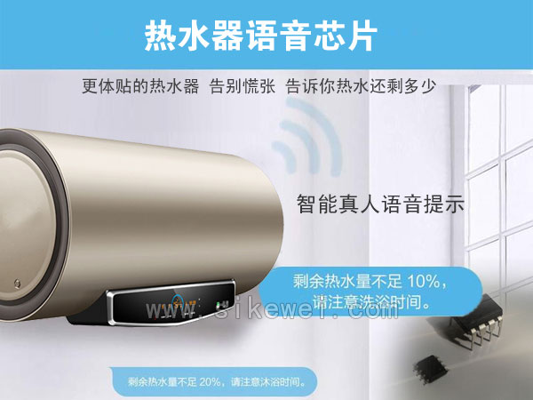 ![]() 熱水器語音芯片,熱水器控制板芯片 目前使用的熱水器無非就是那幾種,燃氣熱水器,電熱水器和太陽能熱水器。我們常常會感覺到當我們想調節(jié)溫度的時候,溫度總是突然變熱突然變冷,沒有任何提示功能,夏天還好,冬天的時候,浴室里面水霧大,調溫有時候也很難看到溫度是多少,當熱水器漏電或者漏氣的情況下,沒有提示,也很容易導致事故的發(fā)生,所以在熱水器上加入語音提示功能,對于安全防范起到一個很好的作用!