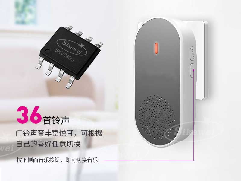 • 無線門鈴音樂芯片,智能感應門鈴語音IC方案應用了SKV64032C語音芯片可以實現(xiàn)語音播放功能,而且內(nèi)容可以定制,超高質(zhì),低功耗如: