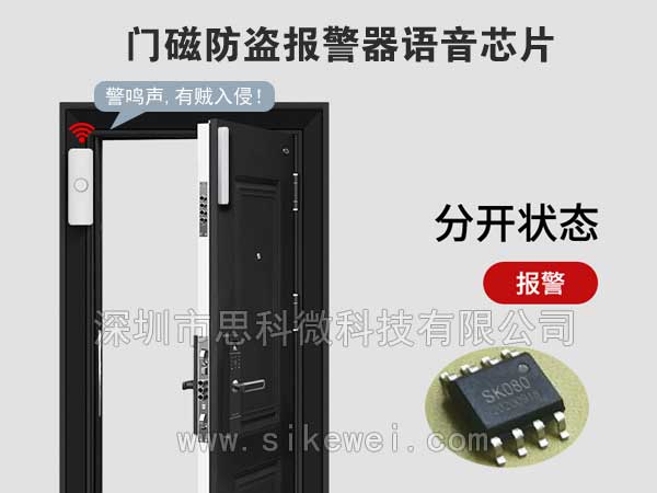 門磁防盜報(bào)警器語(yǔ)音芯片方案,當(dāng)竊賊從窗戶爬行進(jìn)入或者撬門進(jìn)入店鋪、家里時(shí),可以及時(shí)觸發(fā)播放已錄制好的語(yǔ)音或內(nèi)置的報(bào)警語(yǔ)音,聲音洪亮,可以傳達(dá)給戶主甚至是鄰居,以嚇跑竊賊、驚醒戶主,讓戶主有所準(zhǔn)備,財(cái)產(chǎn)和人身安全可以得到保護(hù)。