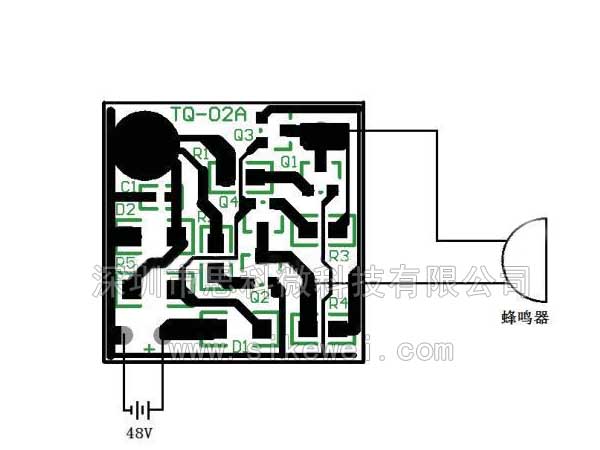 一、功能敘述 1、 工作電壓:48V; 2、 語音內(nèi)容:請(qǐng)注意倒車; 3、 標(biāo)準(zhǔn)女聲,音質(zhì)清晰、品質(zhì)穩(wěn)定! 4、 輸出方式:PWM輸出。 5、本產(chǎn)品PCB上已經(jīng)接好電子元件,只需接電源和蜂鳴器。