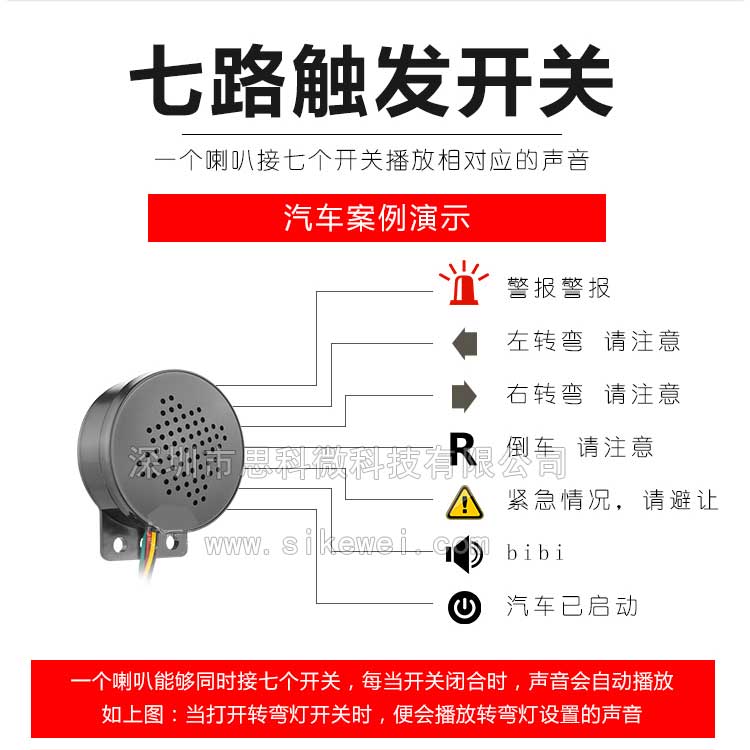 倒車?yán)韧扑]的語(yǔ)音方案SK系列語(yǔ)音芯片,為工業(yè)級(jí)OTP語(yǔ)音芯片