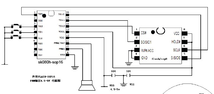高秒數(shù)語音芯片,63段語音芯片,語音芯片外掛接線圖
