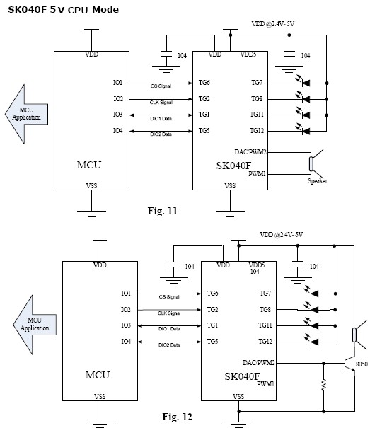 SK040F-DIP14系列語音芯片,在多數(shù)應用中僅作為一從片,受產品上主控MCU的控制,作發(fā)聲設備,不涉及其它的外圍電路,是比較簡單的應用。正因為如此,它得到了極其廣泛的應用。下面列舉SK040系列語音芯片成功應用的行業(yè)與產品,供用戶參考。