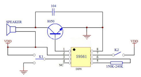 外接 NPN 晶體管可驅(qū)動(dòng)喇叭。