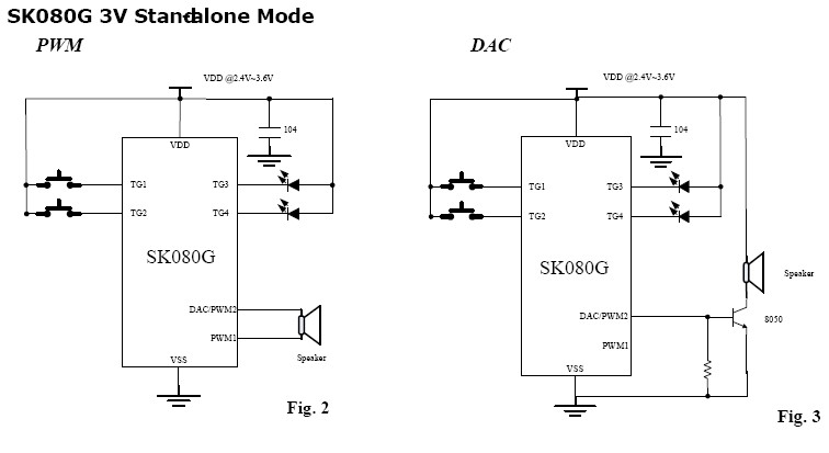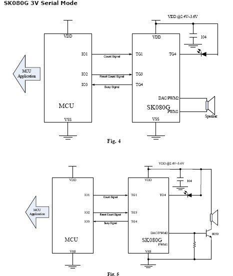 語音芯片型號(hào):SK010-080(G 代表系列、數(shù)字代表秒數(shù)@6K,共有4 種容量:10秒、20秒、40秒、80秒 語音芯片)