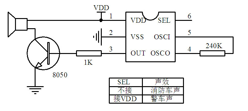 ![]() xL501雙聲報(bào)警IC XL501聲效報(bào)警IC EATURES 功能敘述 ● 可選擇2種聲效(119消防報(bào)警聲效,110警車(chē)警笛聲效) ● 改變外接電阻可調(diào)節(jié)內(nèi)部RC振蕩器振蕩頻率。頻率容許誤差:±30% ● 外接NPN晶體管可驅(qū)動(dòng)喇叭。單音演奏。 ● 上電自動(dòng)復(fù)位。 APPLICATION 產(chǎn)品應(yīng)用 家居安防等。